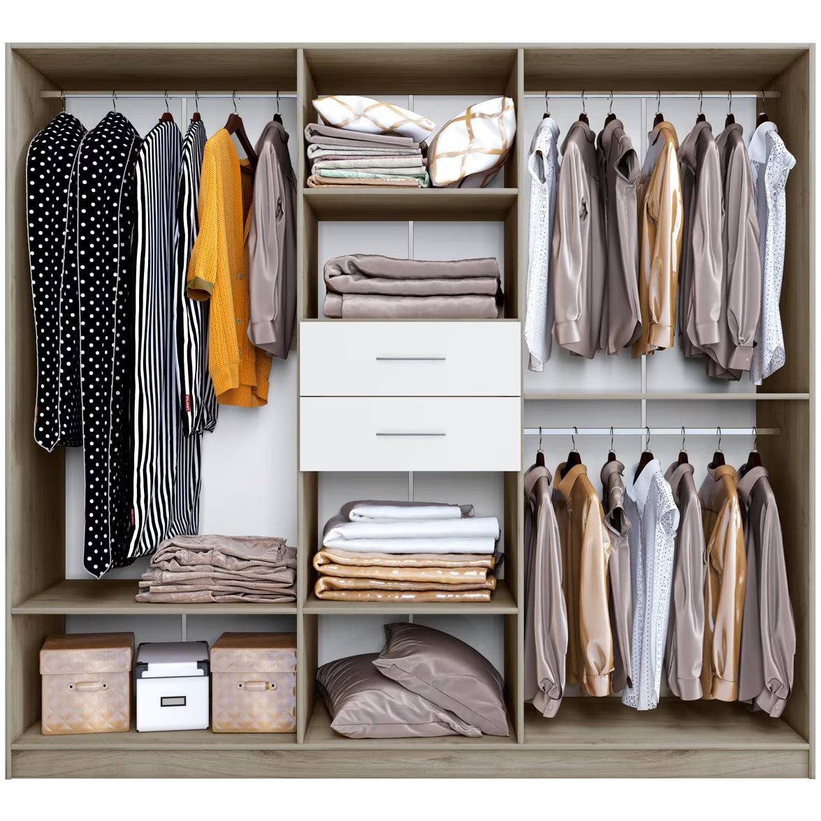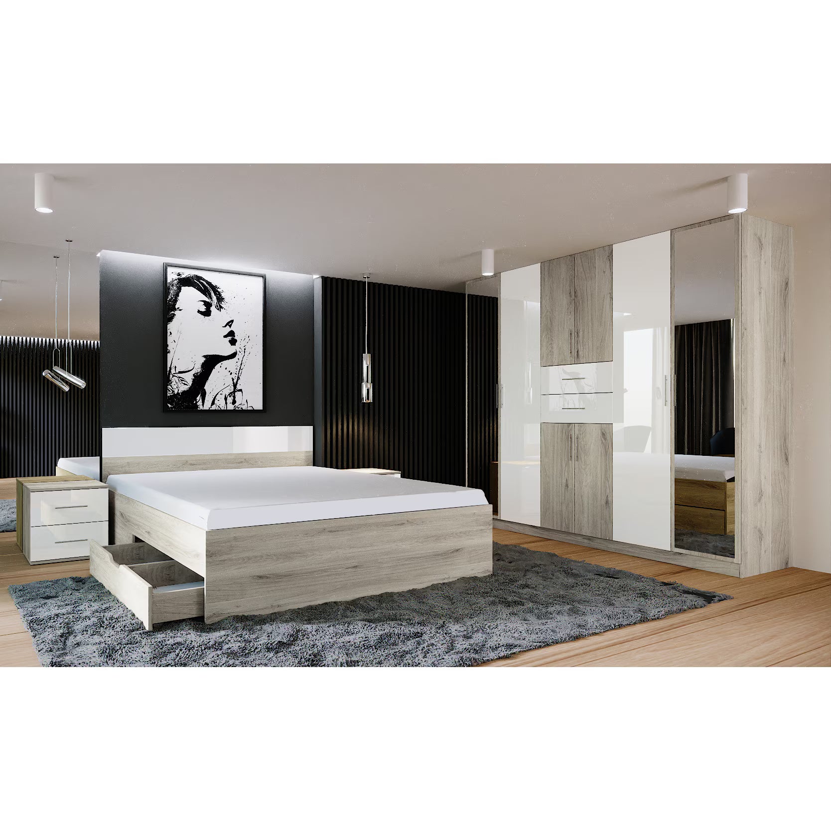 Dormitor Irim Marisa , Pat 160x200 cm, Dulap, 2 Noptiere, Culoare Sonoma/Alb